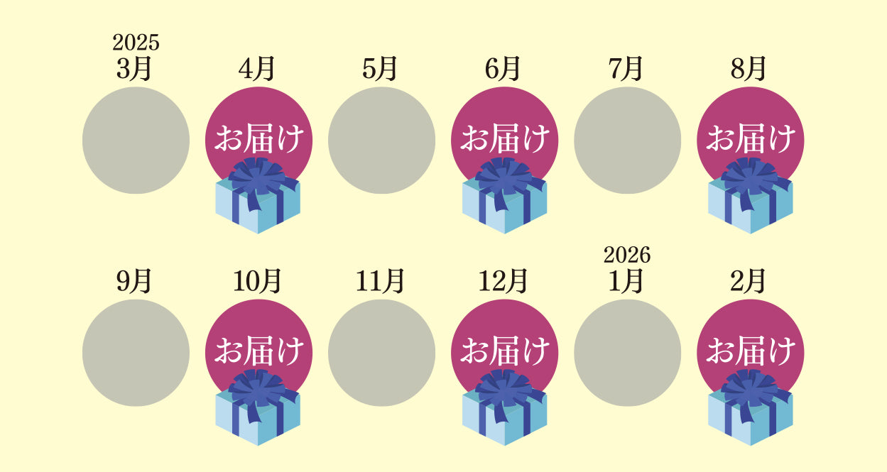 ※左図は隔月でのお届けイメージです。開始月によって異なります。